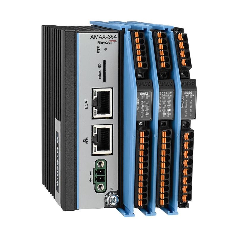 AMAX-354 is specially designed for machine and equipment builders, with ultra compact format for extremely space-saving, providing a cost-effective solution. AMAX-354 is a up to 32-axis EtherCAT controller with flexible I/O extension including local slice I/O expansion and remote EtherCAT I/O device