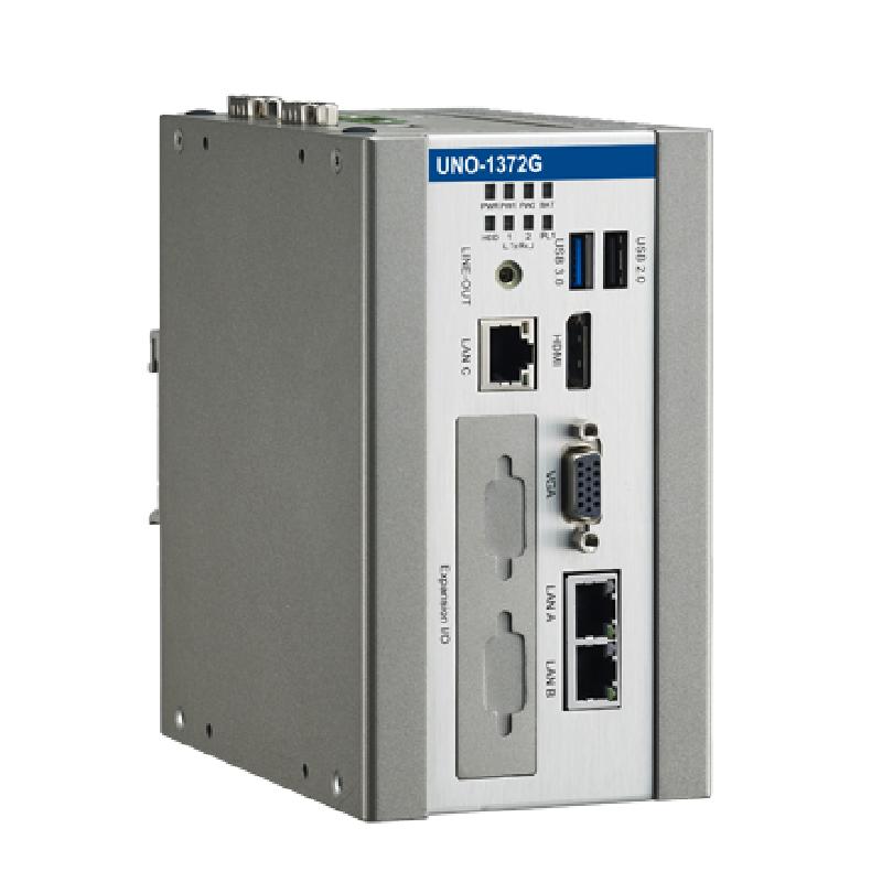 UNO-1372G系列是采用強(qiáng)固型設(shè)計的嵌入式無風(fēng)扇工控機(jī),采用導(dǎo)軌安裝設(shè)計,廣泛應(yīng)用在工業(yè)自動化控制柜中。此工控機(jī)具有雙電源輸入功能,可縮短宕機(jī)時間,提高運(yùn)行效率,通用輸入/輸出端口也有助于機(jī)器制造商直接控制啟動/停止檢查并指示檢查結(jié)果。 UNO-1372G搭載了英特爾?凌動? 四核處理器及 4G DDR3L 內(nèi)存并提供豐富接口,包括3個千兆網(wǎng)口,1個USB3.0端口,2個串口,它還裝備了HDMI及VGA接口來用于圖像顯示。UNO-1372G支持研華iDoor技術(shù),可選用iDoor模塊(PoE卡或隔離型串口卡)擴(kuò)展成網(wǎng)關(guān)控制器。