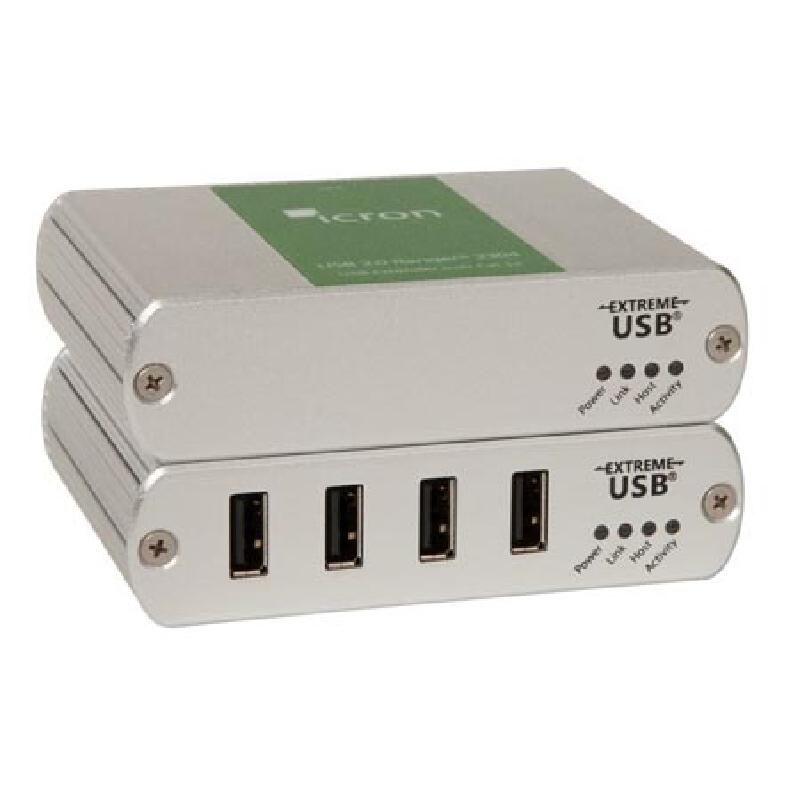 The USB 2.0 Ranger? 2304 is a 4-port USB 2.0 high-speed extender enabling USB 2.0 connections at up to 480Mbps over 100m (330ft) of Cat 5e/6/7 cabling. No additional software drivers needed. The Ranger 2304 provides a 4-port remote USB 2.0 powered hub that delivers 600mA to each port and extends up to four USB 3.0, 2.0 and 1.1 devices without an additional hub.